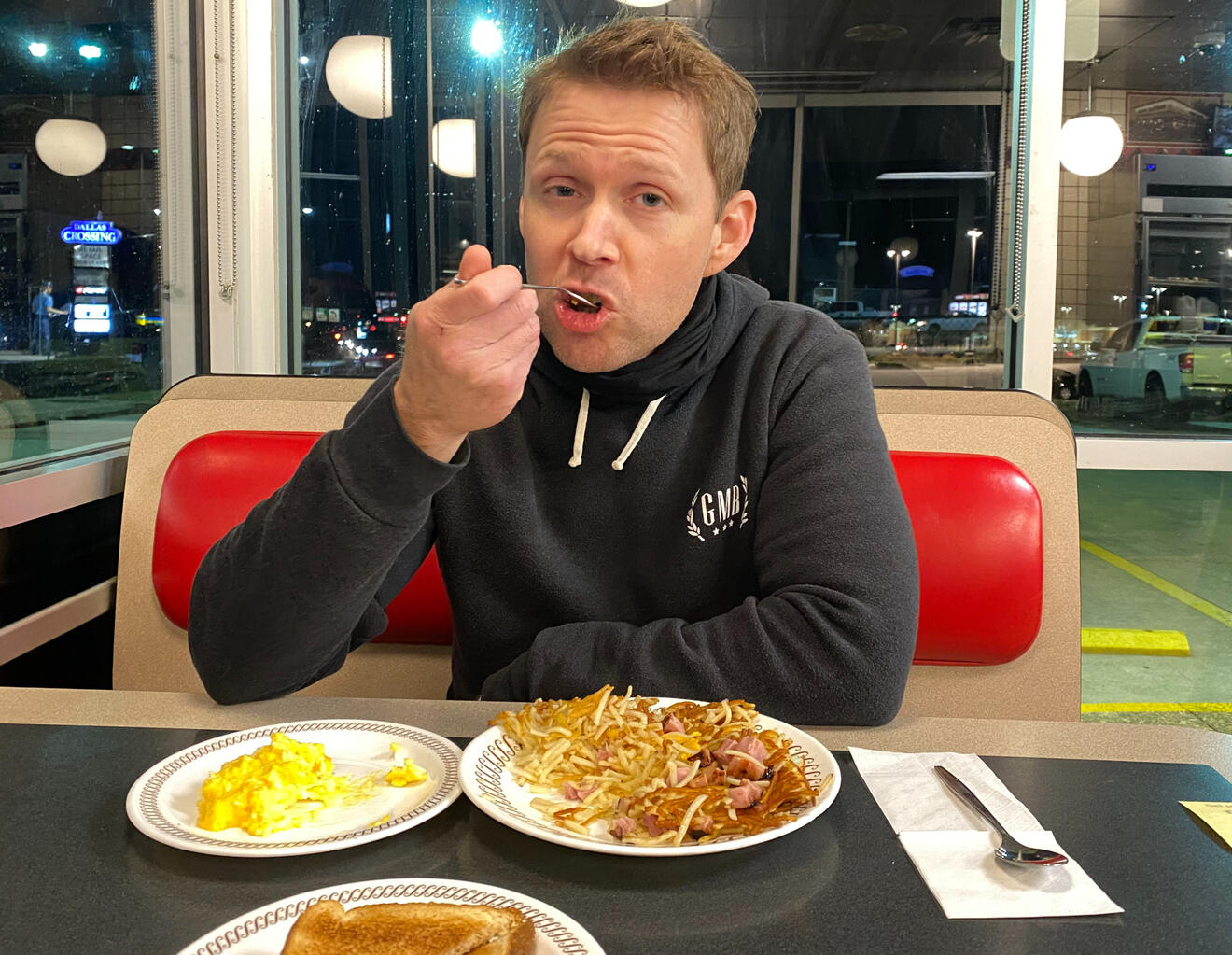 I lost twenty pounds with Intermittent fasting. It also doubled my testosterone and made me an expert at arguing on the internet. It just felt good to be superior to all the sheeple still eating three meals a day, you know? But after a while, it also made me sad. One day, I was driving past a Waffle House, and I just had this epiphany: breakfast isn't a time of day; it's a state of mind. From that moment, I was on a mission to show what a man can do when he puts his mind to filling an eight-hour eating window with as many denver omelets as humanly possible.
